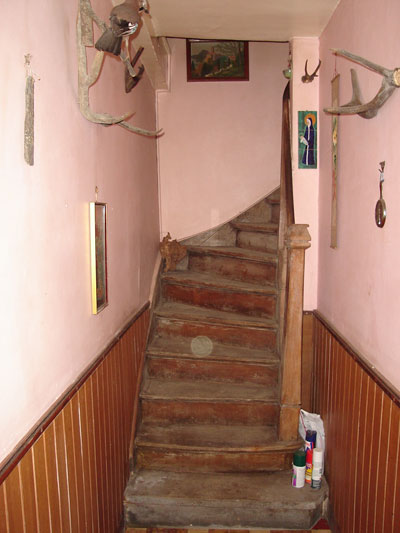 L'escalier qui montait à l'étage de la partie de droite...