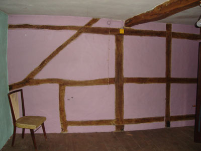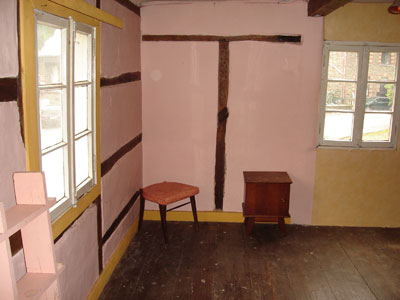 Les chambres de l'étage (toujours au 47). Vous noterez les colombages, sur la façade et sur les murs intérieurs.